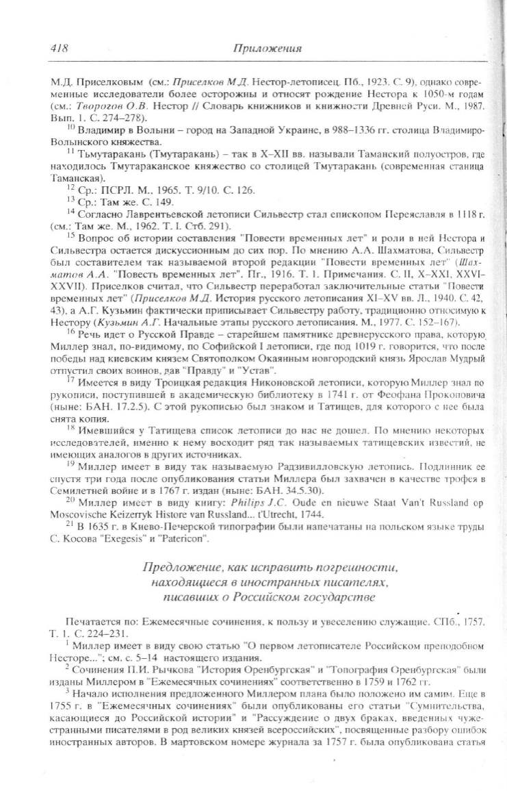 Миллер имеет в виду свою статью "О nервом летоnисателе Российском преподобном