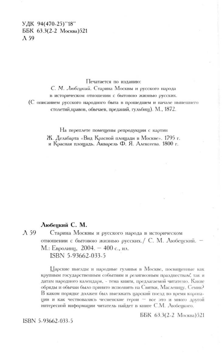 .Аюбсцкий. Старина Москвы и русского народа