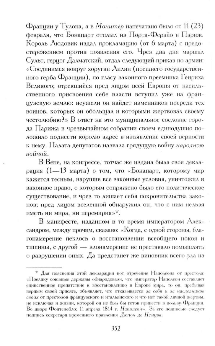 Для пояснения этой декларации вот отречение Наполеона от престола: