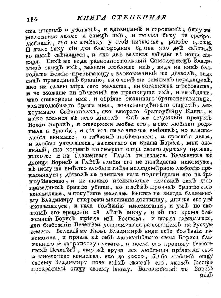 ~енный БорисЪ прiиде И3Ъ Роеmова, и mог,да с.лышашеся