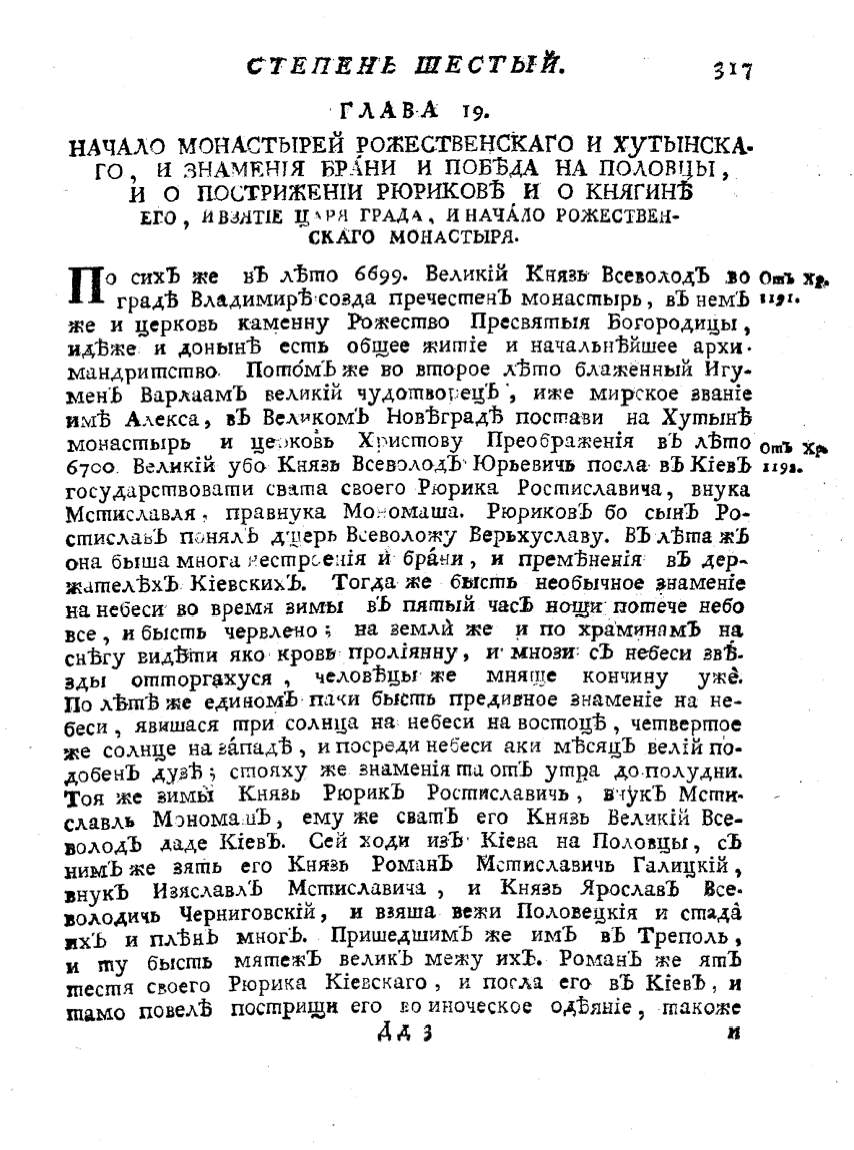 володЪ даде КiевЪ. Сей }{ОД~ из-Ъ· Кiева на Половцы, сЪ