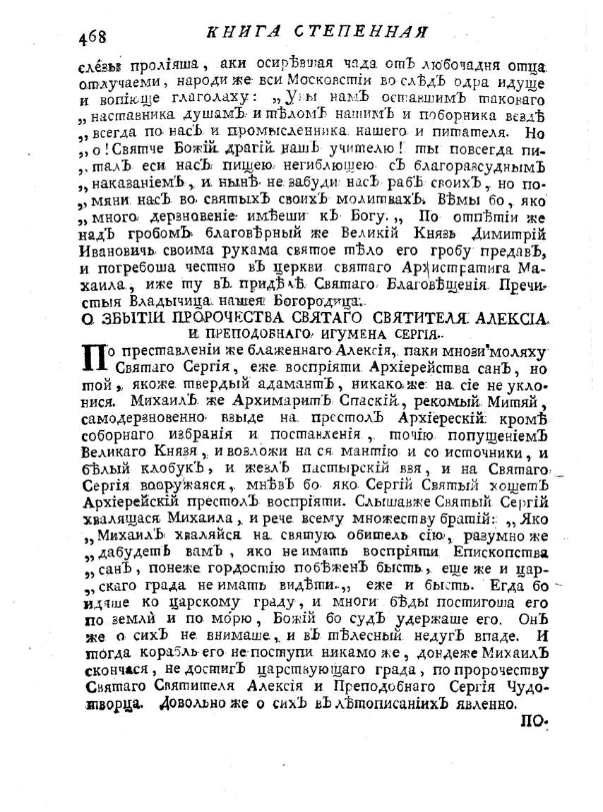 О ЗБЫТIИ ПРОРОЧКСТБА СВЯТАГО СВЯТИТЕЛЯ: А.ЛЕКСIА.