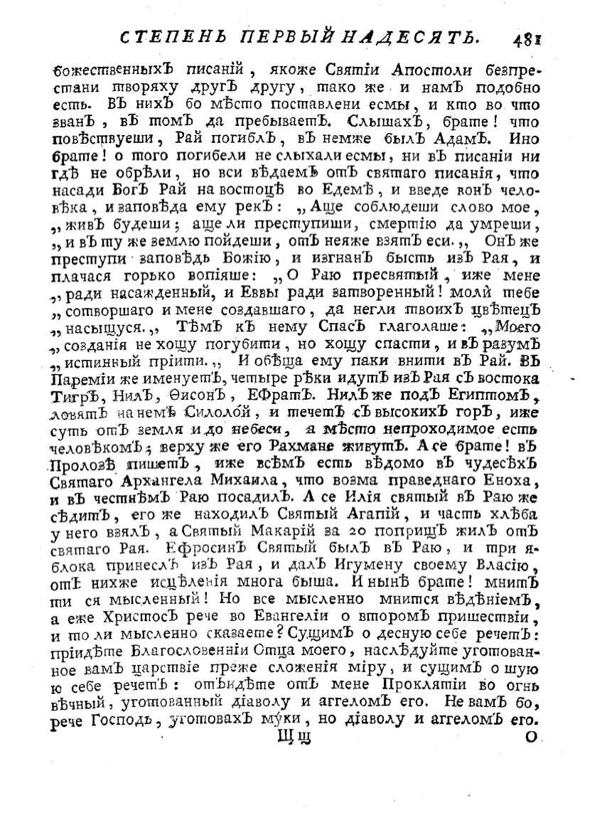 свяmаго Рая. ЕфросинЪ Снятый былЪ вЪ Раю, и mри я