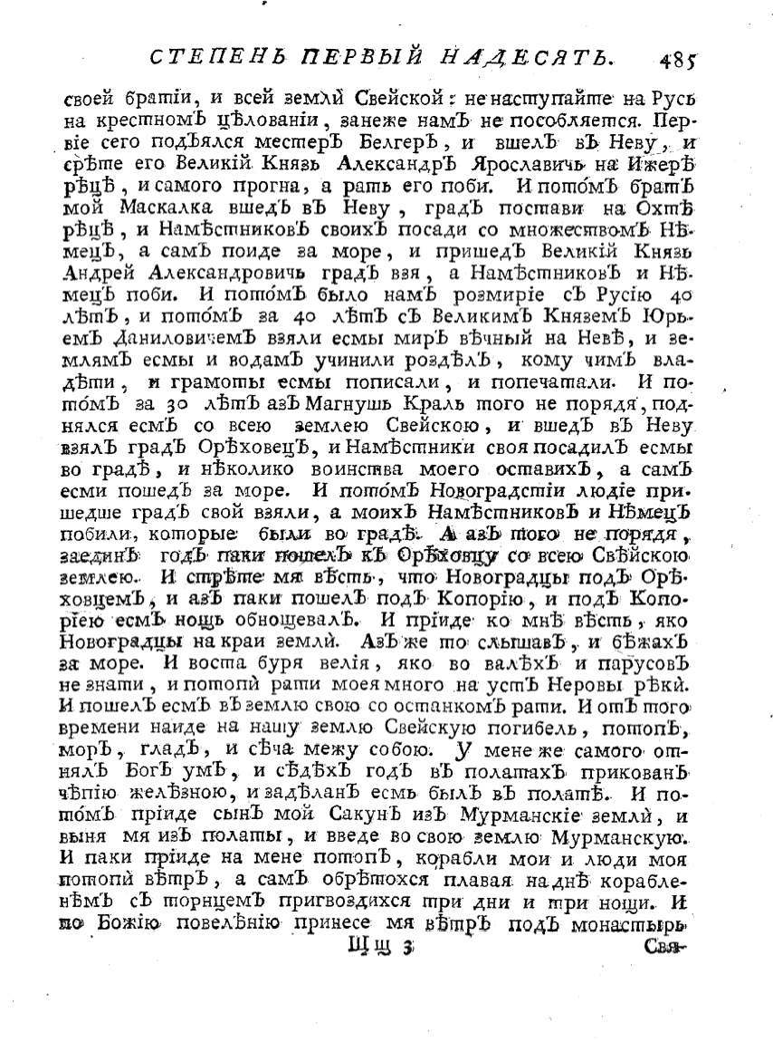 нялся есмЪ со всею з.емлею Свейекаю, и· вшедЪ вЪ Неву