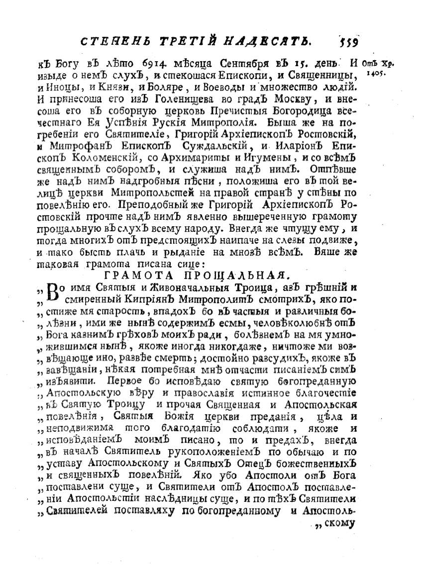 смиренный КипрiянЪ Миmрополиm:Ь смотрихЪ, яко по