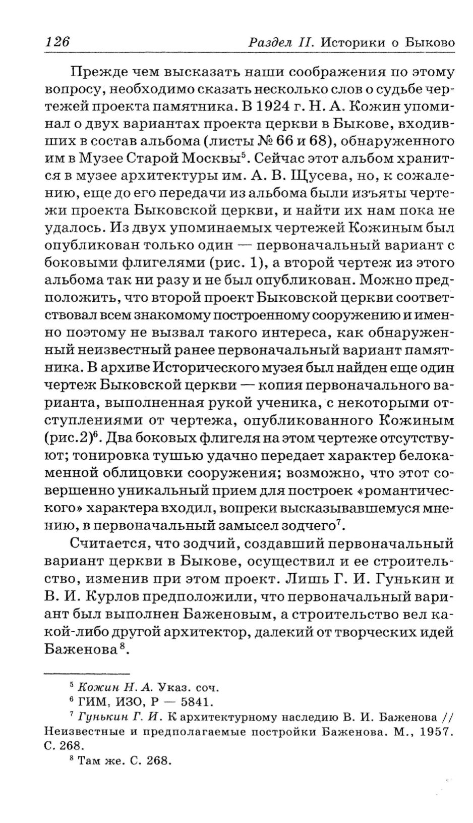 нал о двух вариантах проекта церкви в Быкове, входив