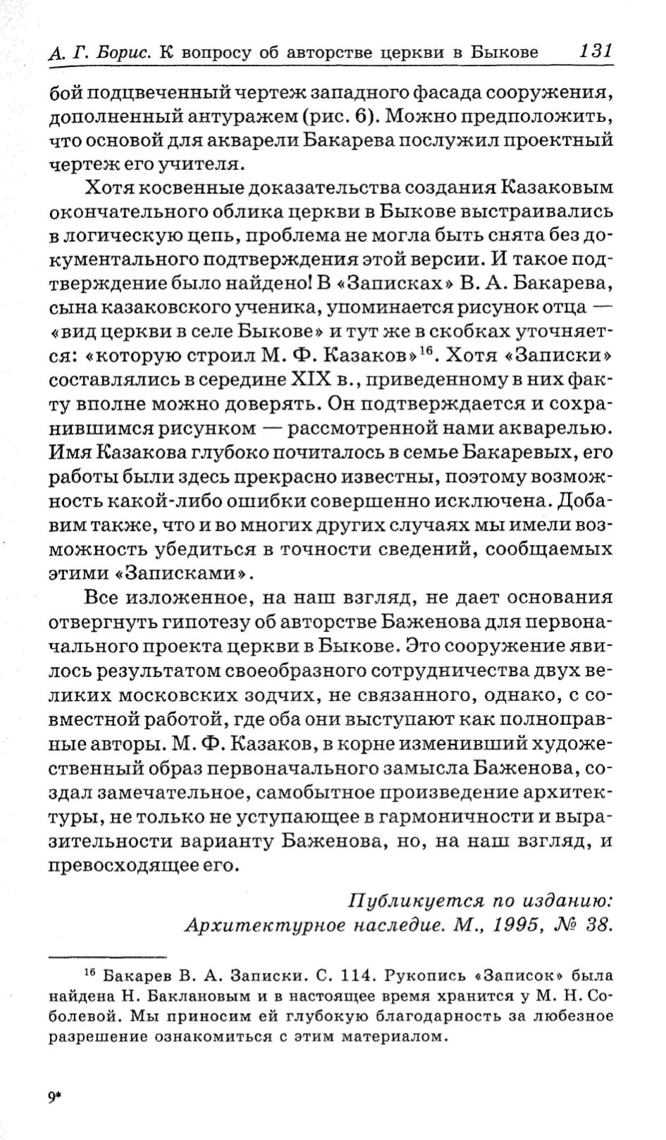 А. Г. Борис. К вопросу об авторстве церкви в Быкове