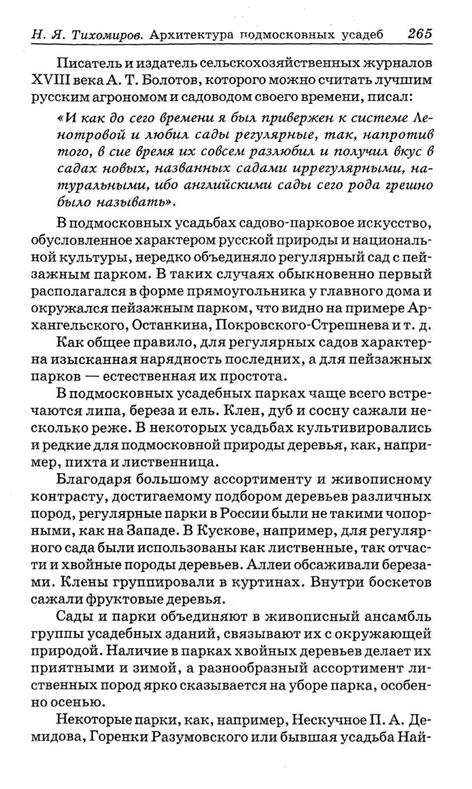 Н. Я. Тихомиров. Архитектура r1одмосконных усадеб