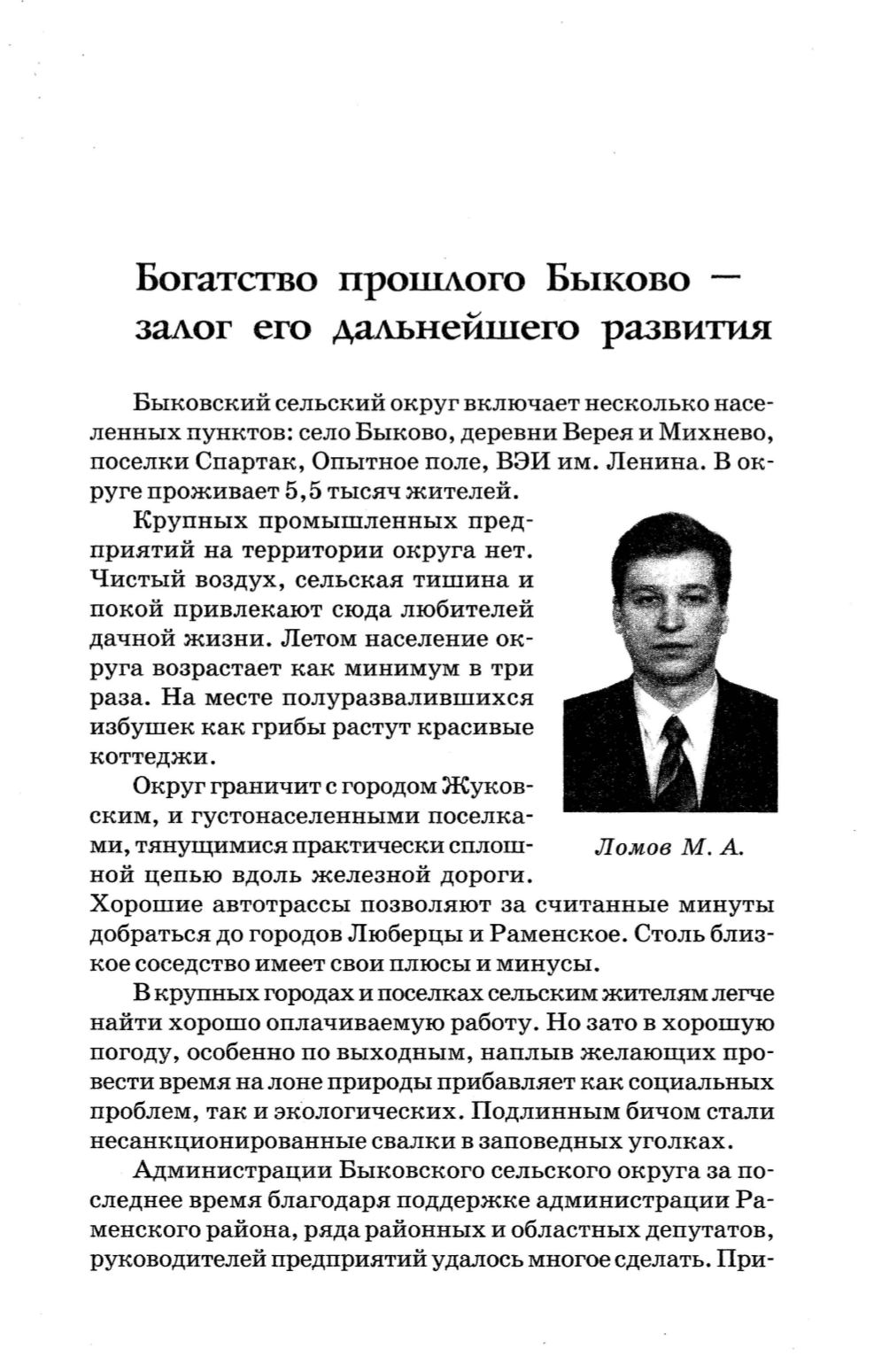 ленных пунктов: село Быково, деревни Верея и Михнево,