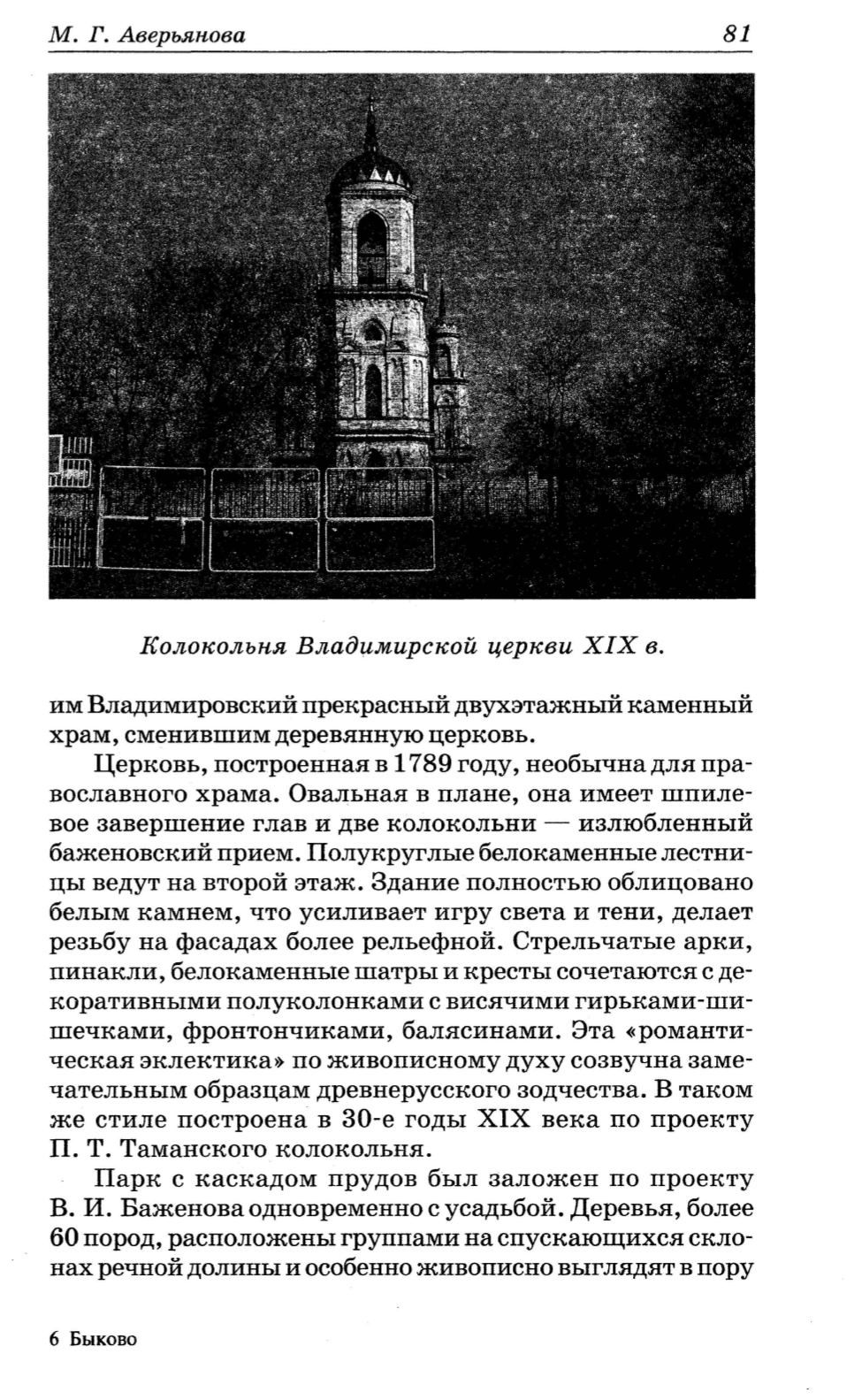 В. И. Баженова одновременно с усадьбой. Деревья, более