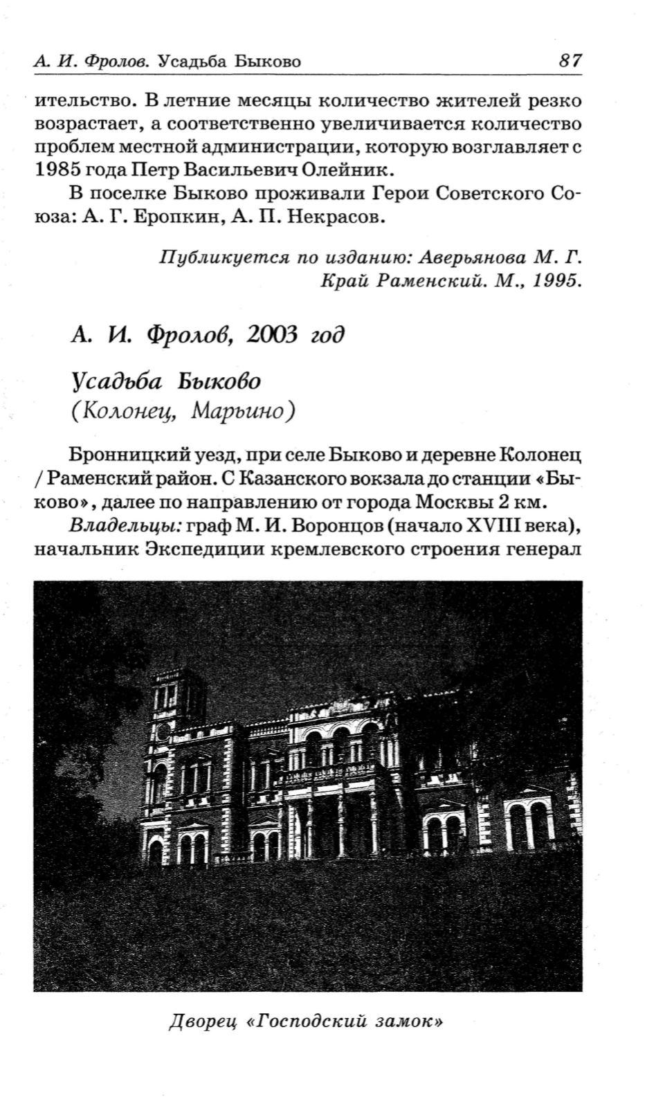 А И. Фролов. Усадьба Быково