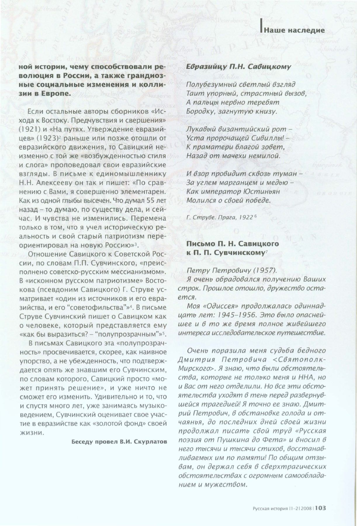 Струве Сувчинский пишет о Савицком как