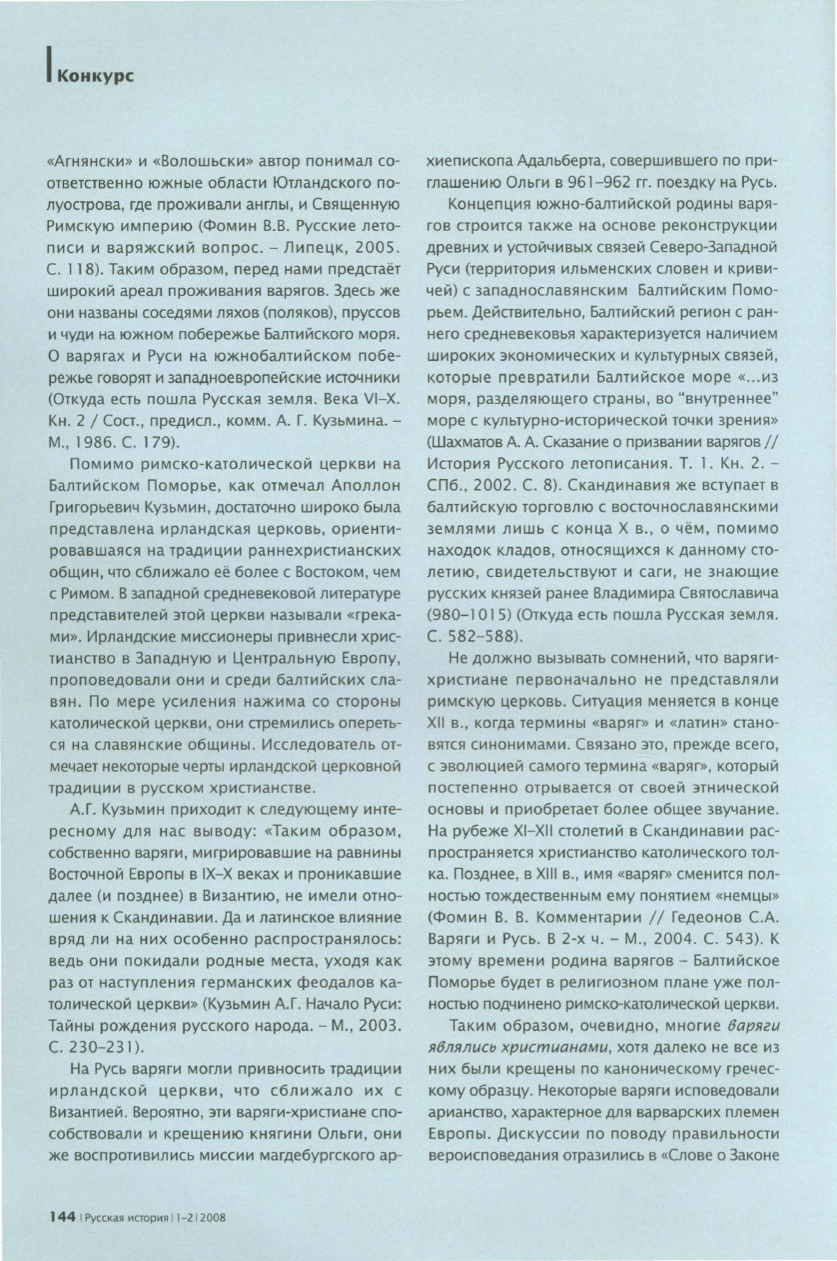 толической церкви» (Кузьмин А.Г. Начало Руси: