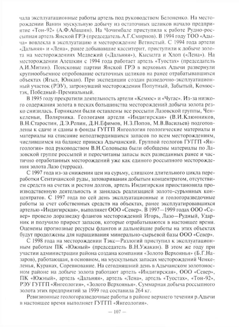 числившимся на балансе прииска Ады ч а н ский. Группой геологов ГУ ГГП <<Я н