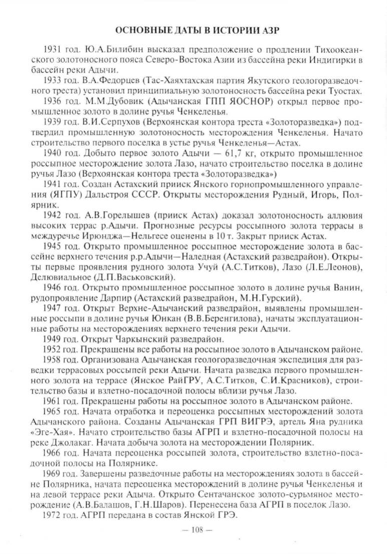 год. Организована Адычанекая геологоразведочная экспедиuия для раз-
