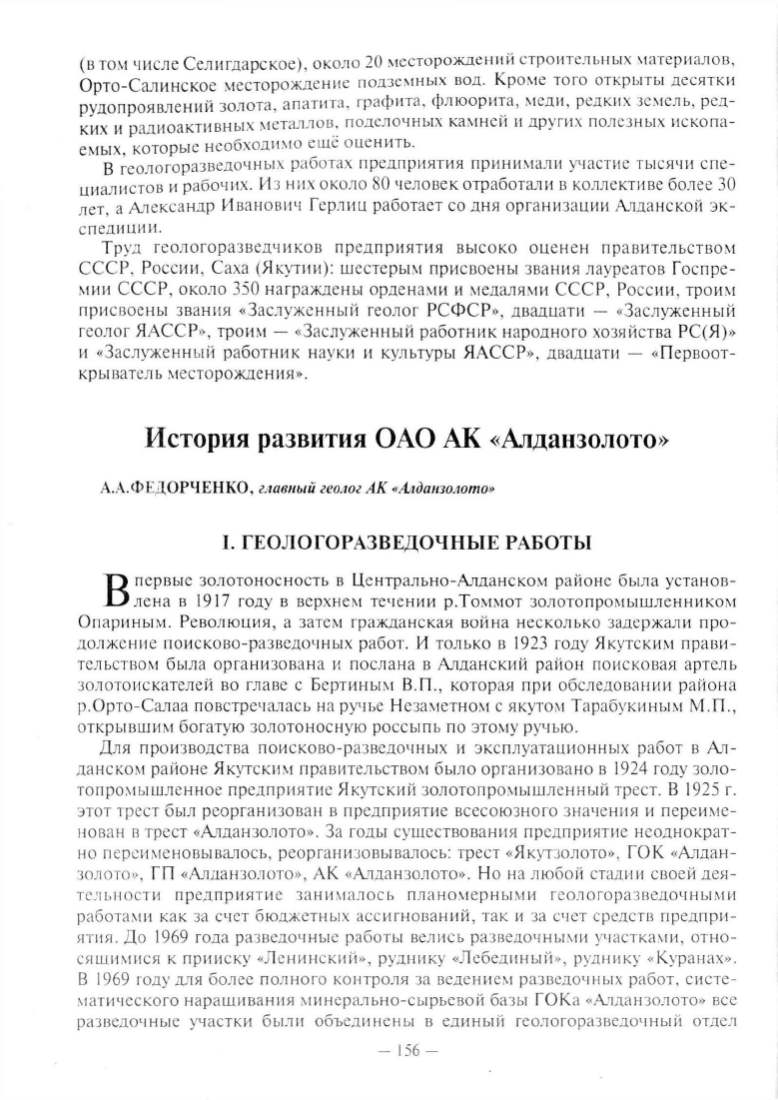 А.А.ФЕДОРЧ ЕНКО, главиый геолог АК «Алдаюолоmо»