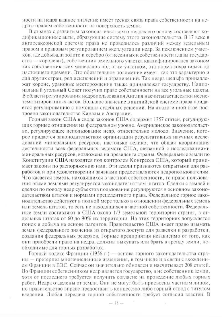 В странах с развнты~t законодательство~\ о недрах его основу составляют ко