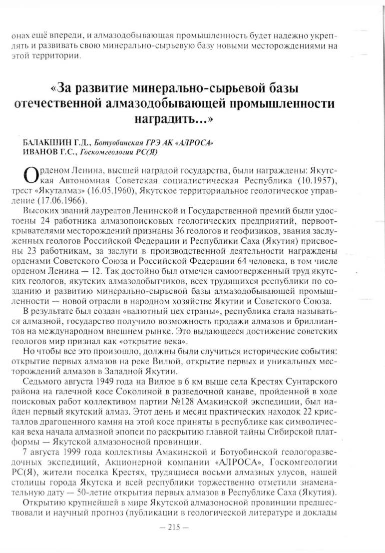 БАЛАКШИН Г.Д., Ботуобшtсh·ая ГРЭ АК «АЛРОСА»