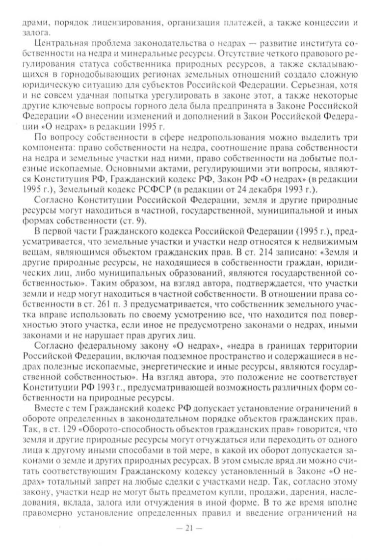 ся Кон ституция РФ , Гражданский кодекс РФ , Закон РФ <<О недрах •> (в реда кции
