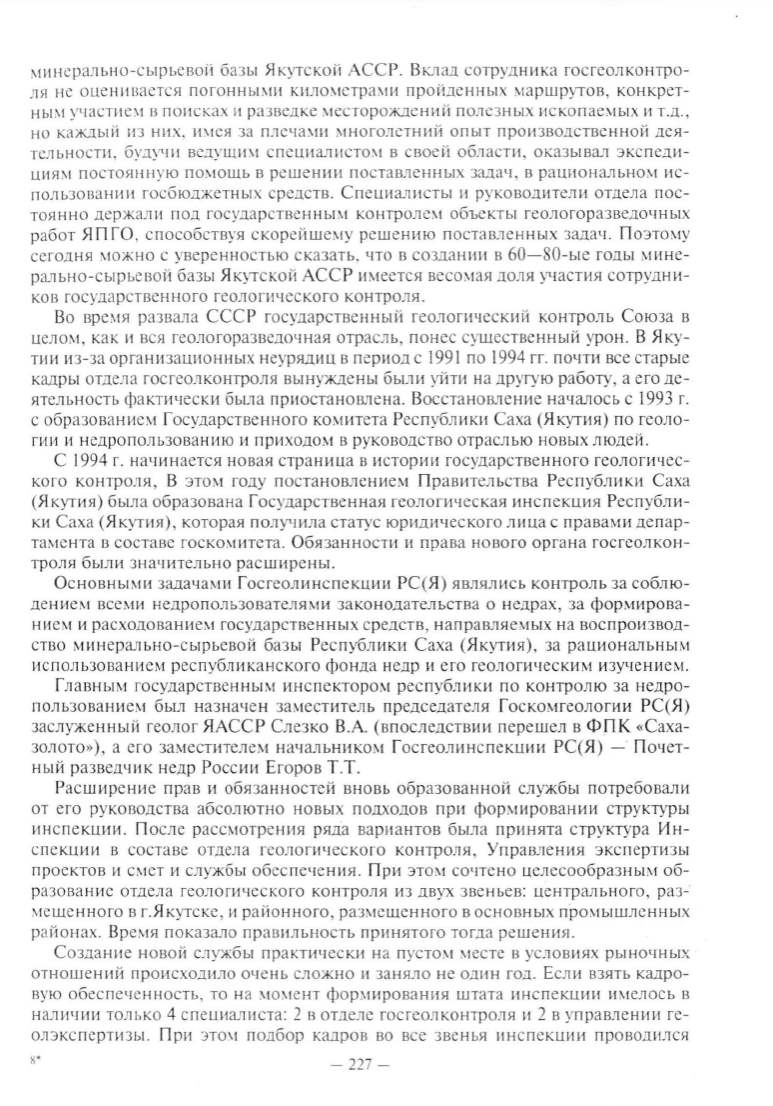 Основньши задача~111 Госгеоли нспекции РС(Я) являлись ко нтроль за соблю