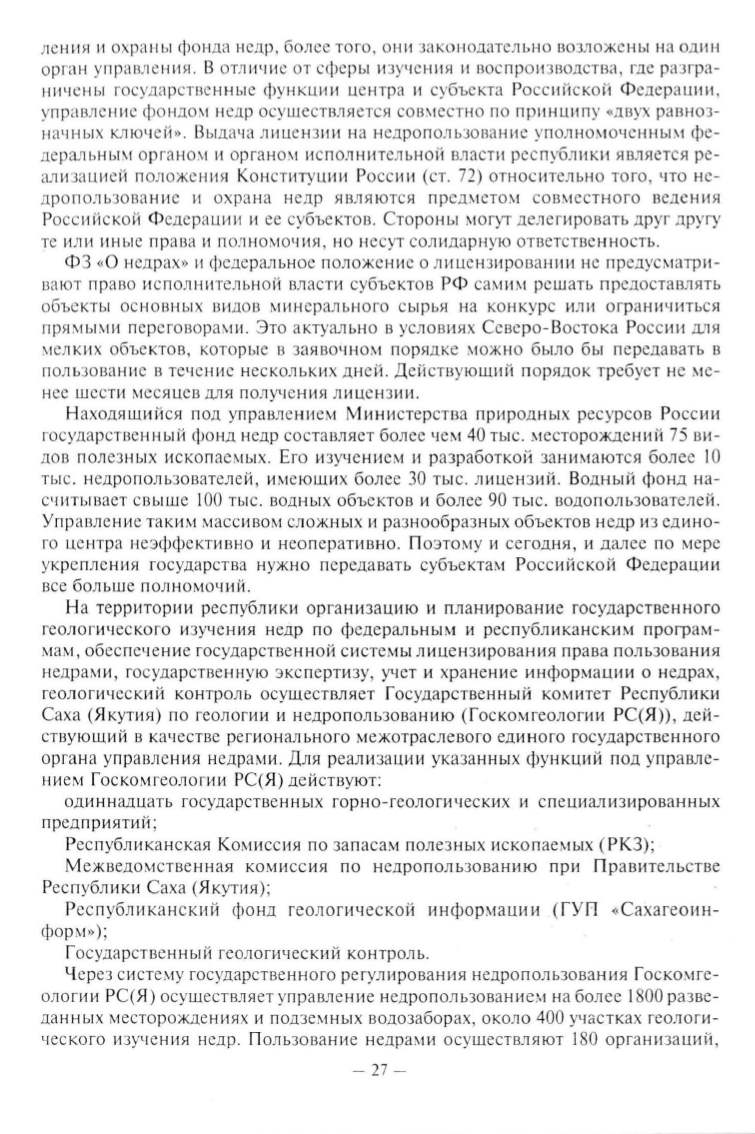 ления и охраны фонда недр, более того, он и законодательно возложены н а один