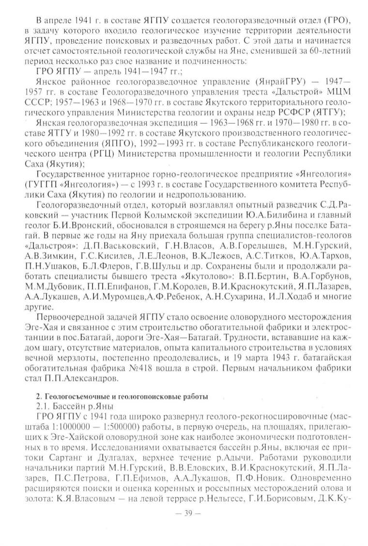 гай. В первые же годы на Яну приехала большая группа специалистов-геологов