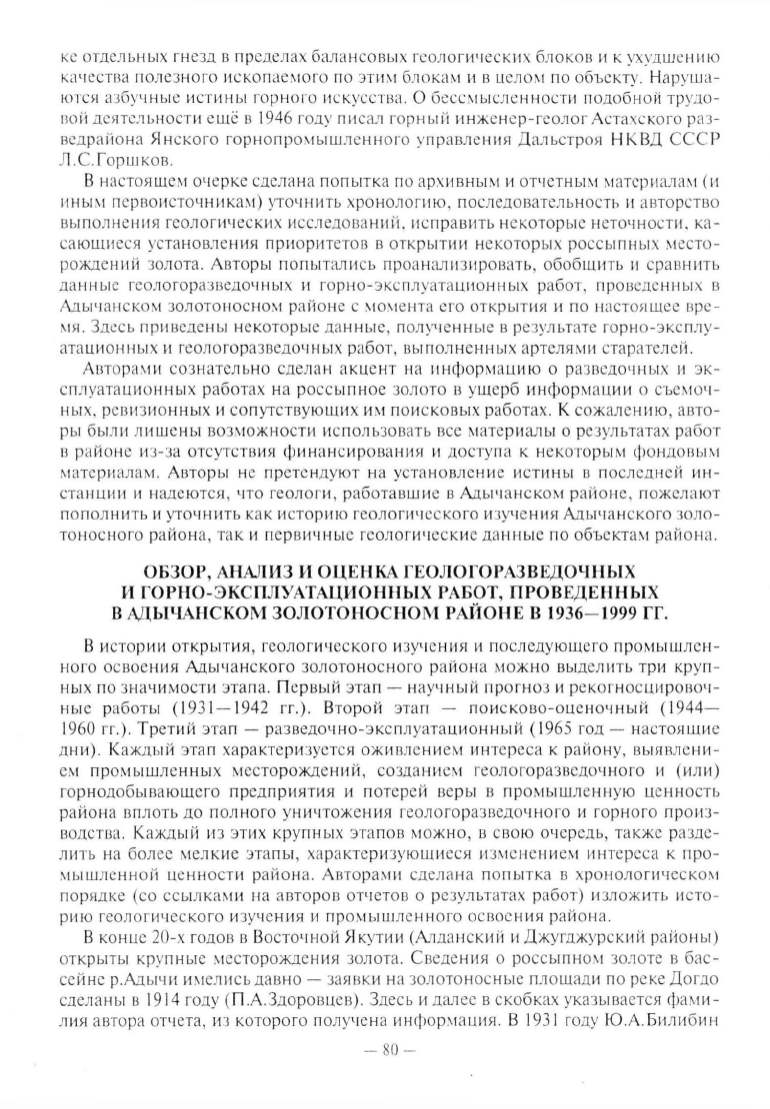 Адычанеком золотоносно\! рай он е с \10\lента его открытия и по насто;1 шее вре
