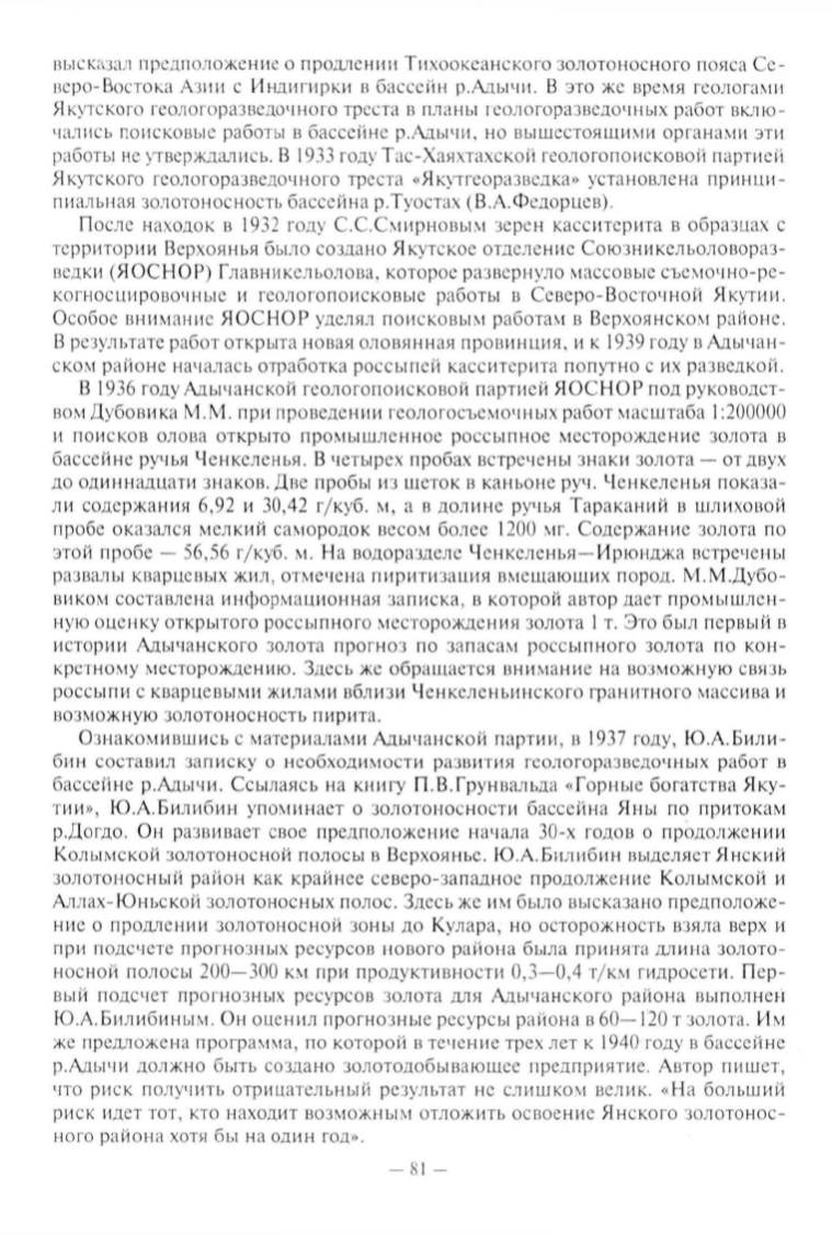 бассей не р.Адычи . Ссылаясь на книгу П . В.Грунвальпа << Горные богатства Я ку