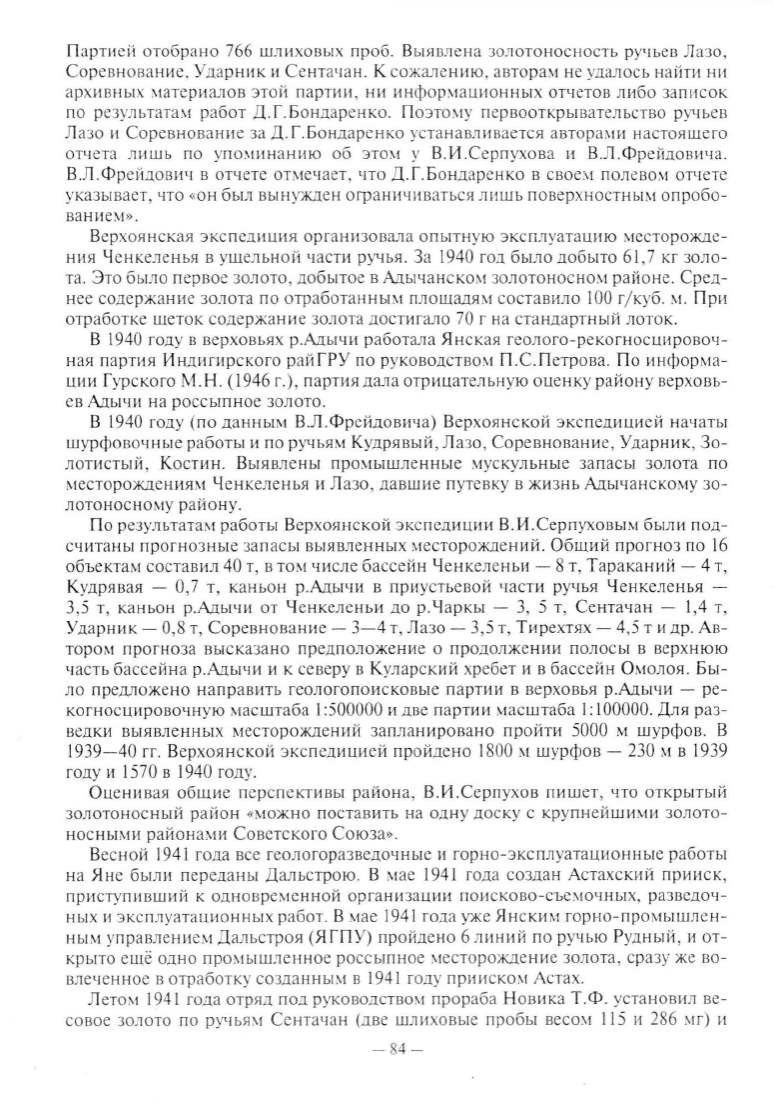 та . Это б ыло п ервое золото, добытое в Адычанско~t золото носно~! рай оне. Сред