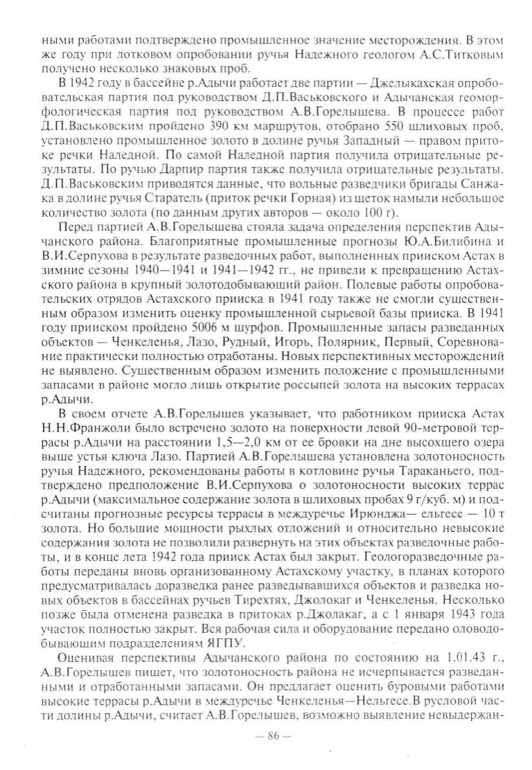 ти дол ины р.Адычи, считает А. В . Горелышев , ВОЗ\IОЖНО выявление невьшержа н-