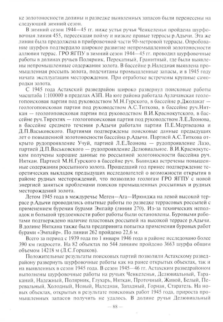 лет о nовышенной золотоносности бассей н а р.Адычи . П а ртией А.С.Титко ва от