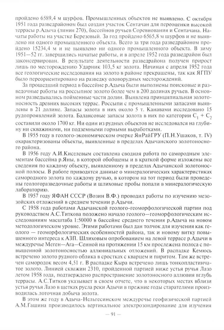 года, подтверждено рас n ространение золотоносного аллювия в глубь