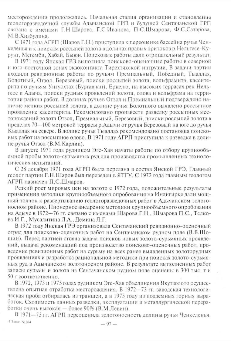 геологоразведочной службы Адыча н еко И ГРП