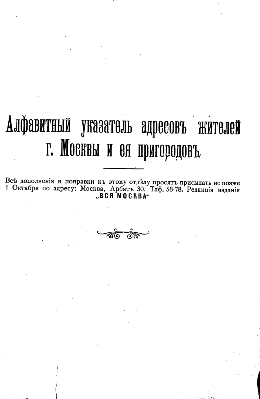 Алфавитный указатель адресовъ жителей г. Москвы и ея пригородовъ - page 1