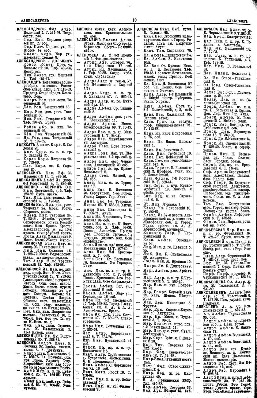 Алфавитный указатель адресовъ жителей г. Москвы и ея пригородовъ - page 10