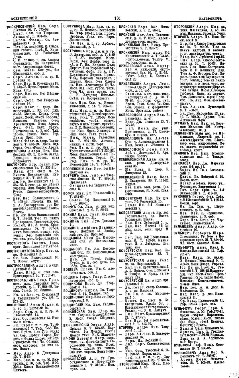 Алфавитный указатель адресовъ жителей г. Москвы и ея пригородовъ - page 101