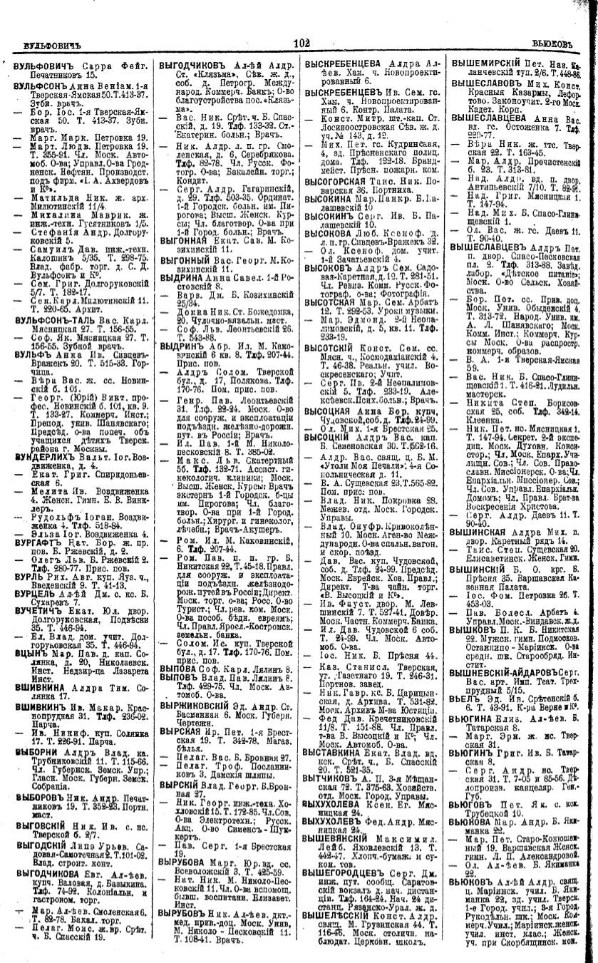 Алфавитный указатель адресовъ жителей г. Москвы и ея пригородовъ - page 102
