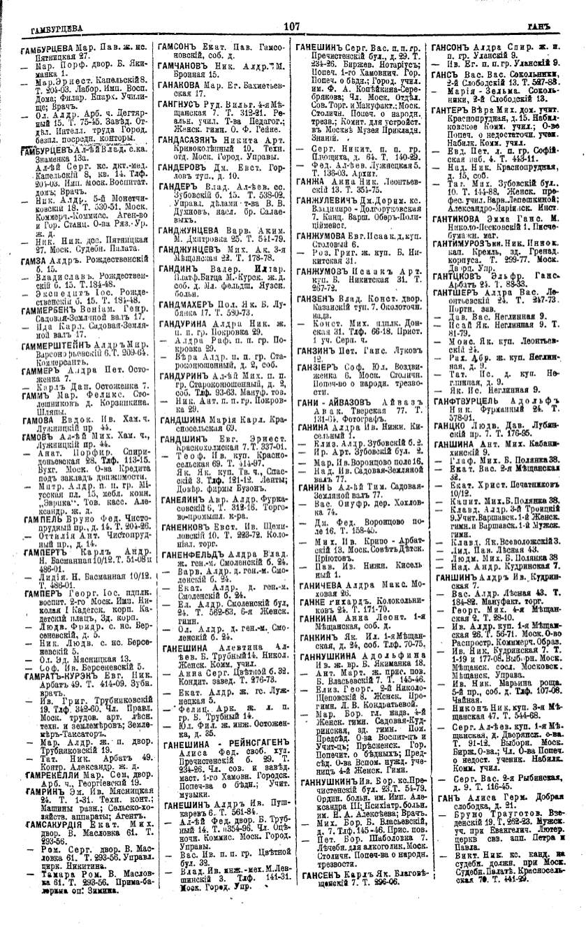 Алфавитный указатель адресовъ жителей г. Москвы и ея пригородовъ - page 107