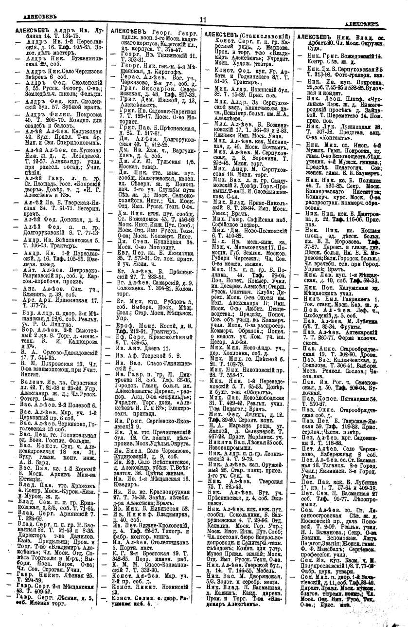 Алфавитный указатель адресовъ жителей г. Москвы и ея пригородовъ - page 11