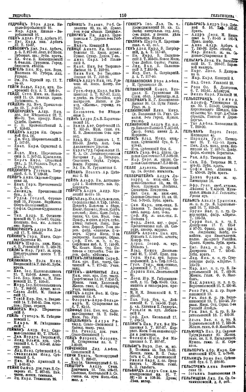 Алфавитный указатель адресовъ жителей г. Москвы и ея пригородовъ - page 110