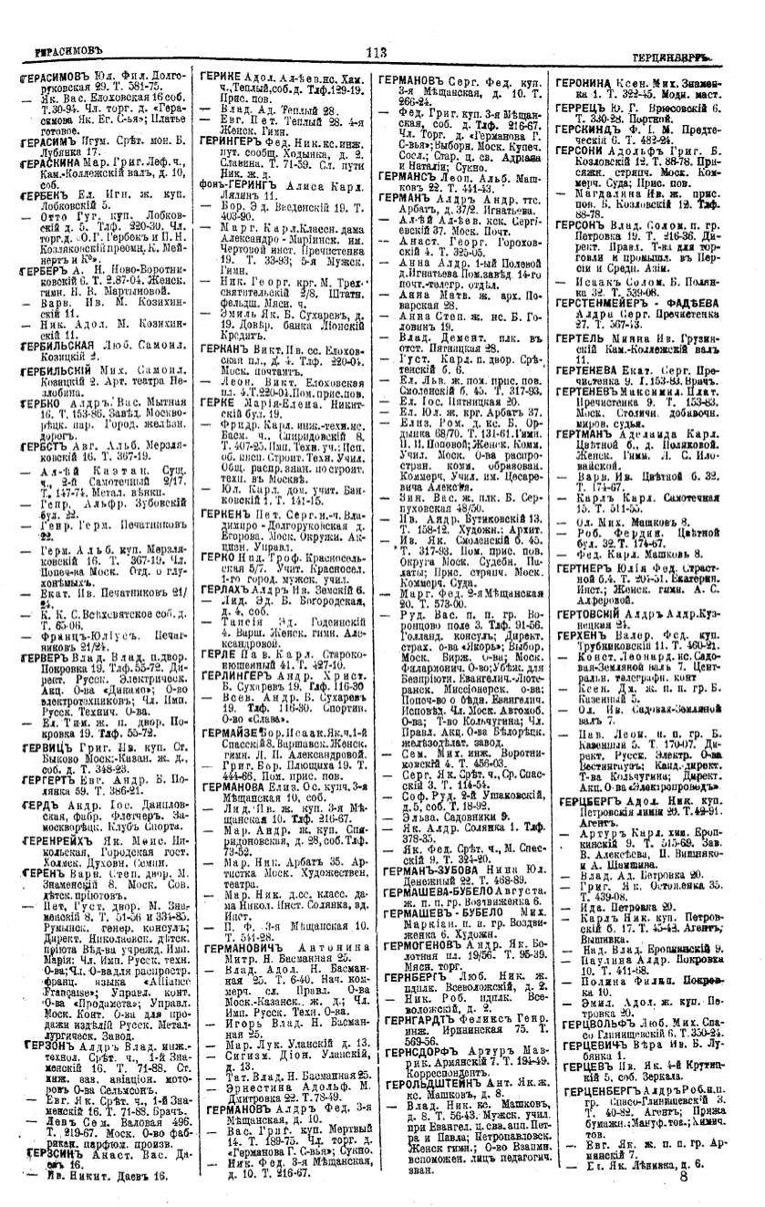 Алфавитный указатель адресовъ жителей г. Москвы и ея пригородовъ - page 113