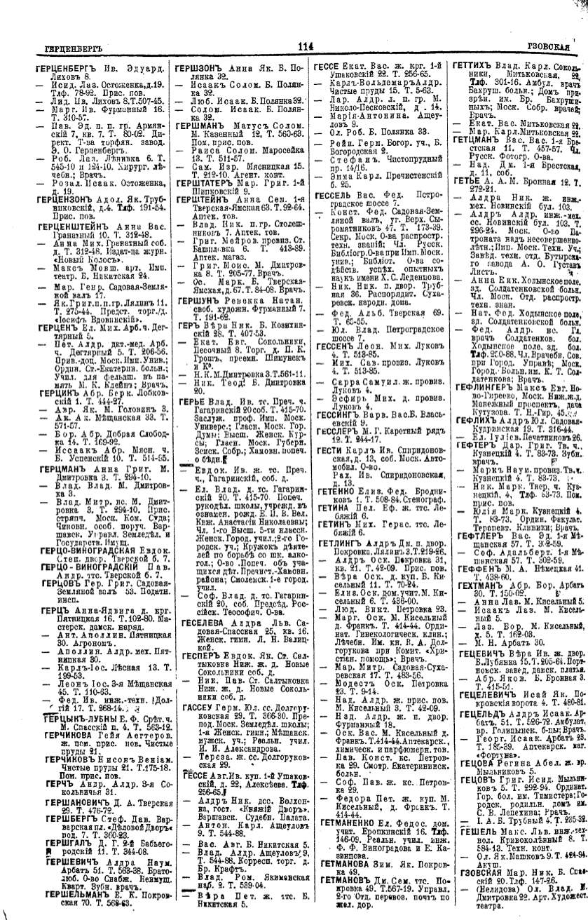 Алфавитный указатель адресовъ жителей г. Москвы и ея пригородовъ - page 114
