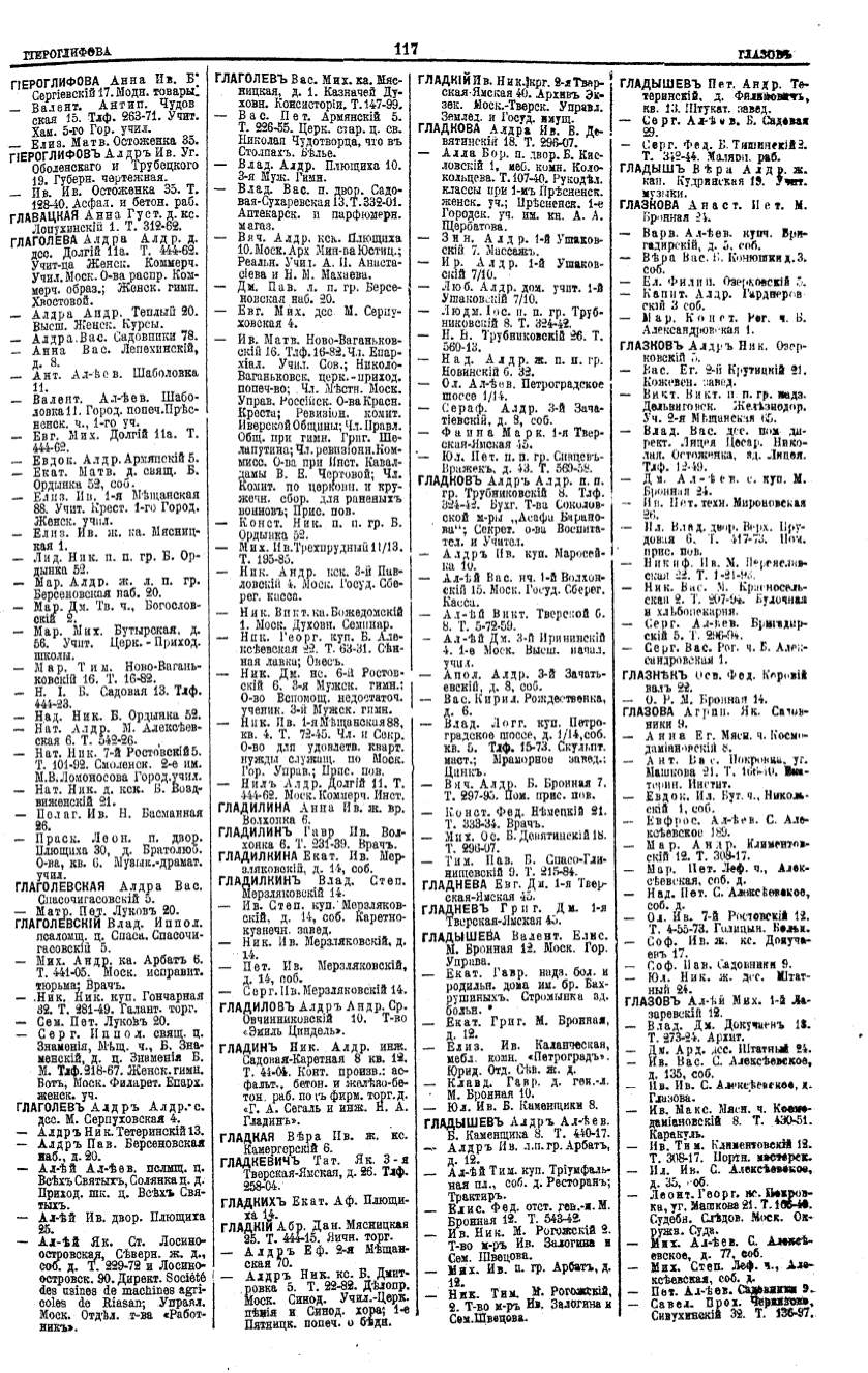 Алфавитный указатель адресовъ жителей г. Москвы и ея пригородовъ - page 117