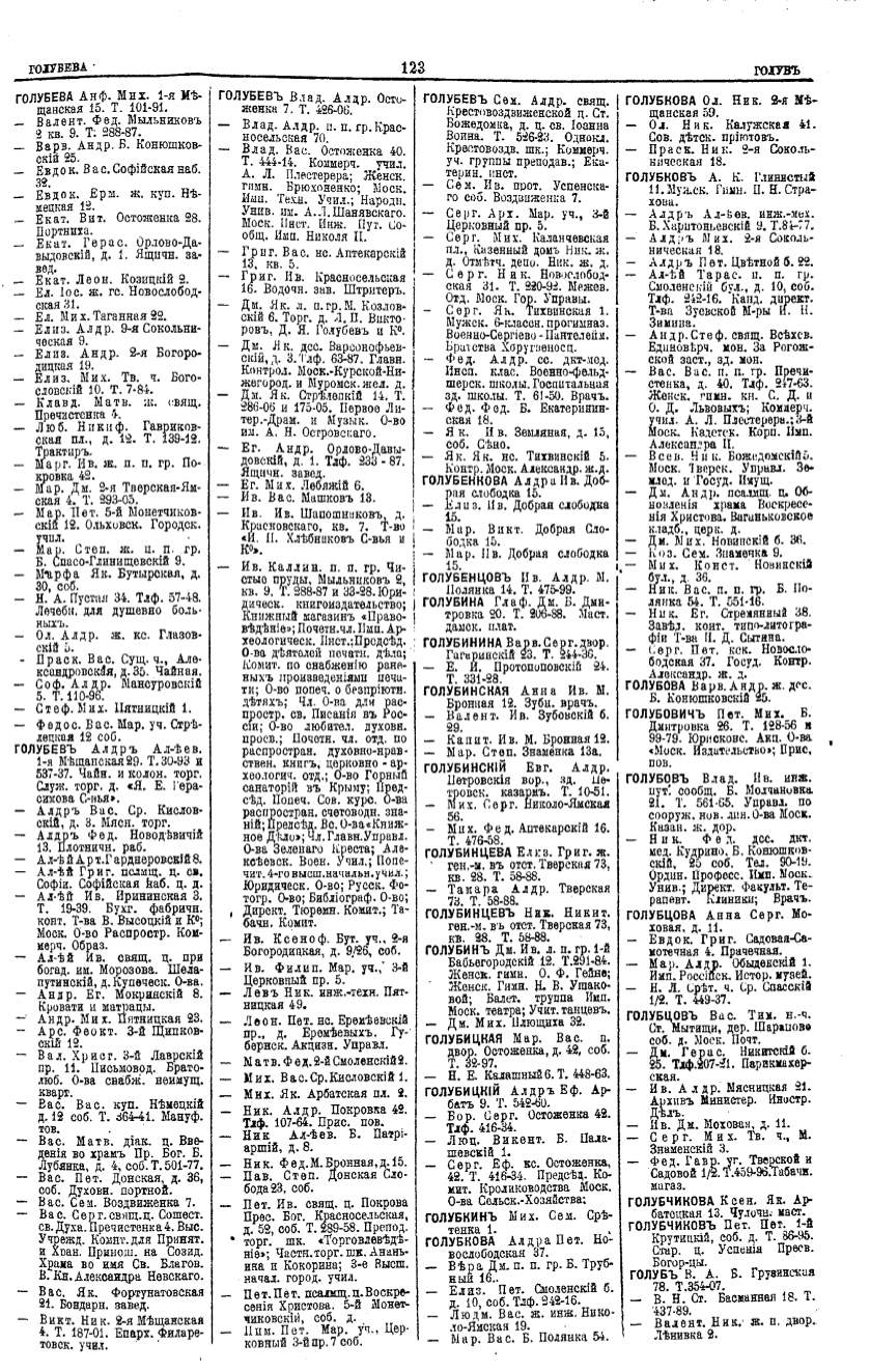 Алфавитный указатель адресовъ жителей г. Москвы и ея пригородовъ - page 123