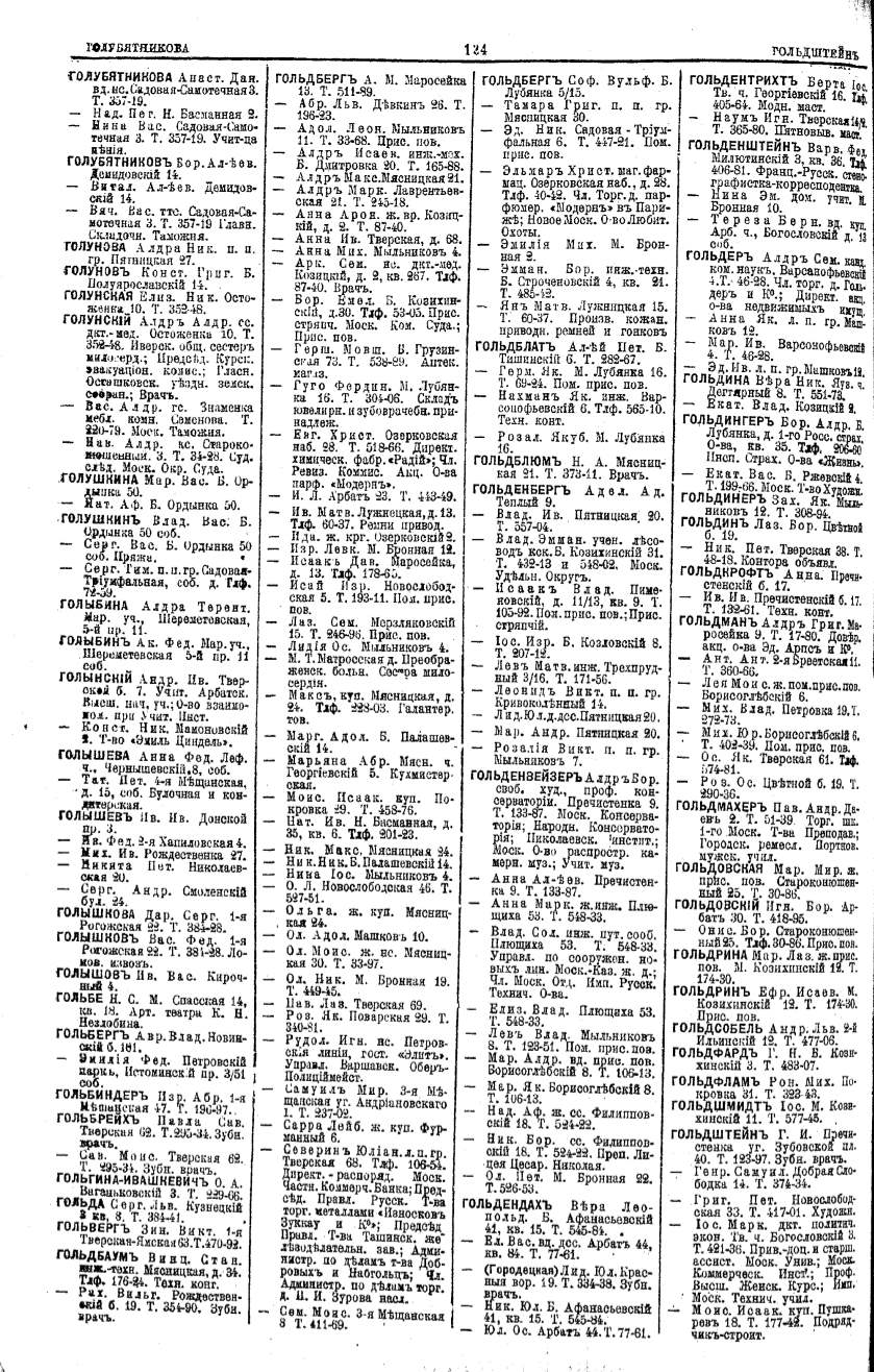 Алфавитный указатель адресовъ жителей г. Москвы и ея пригородовъ - page 124