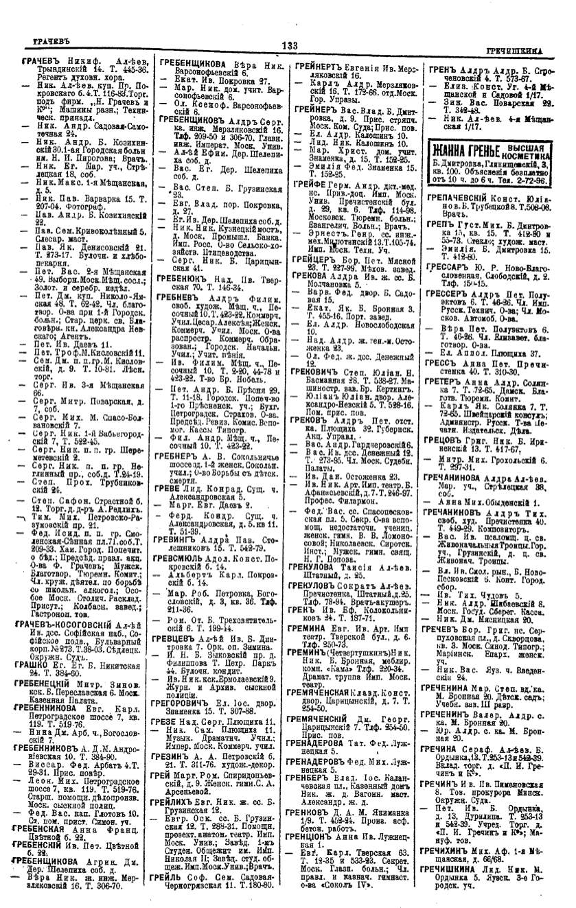 Алфавитный указатель адресовъ жителей г. Москвы и ея пригородовъ - page 133