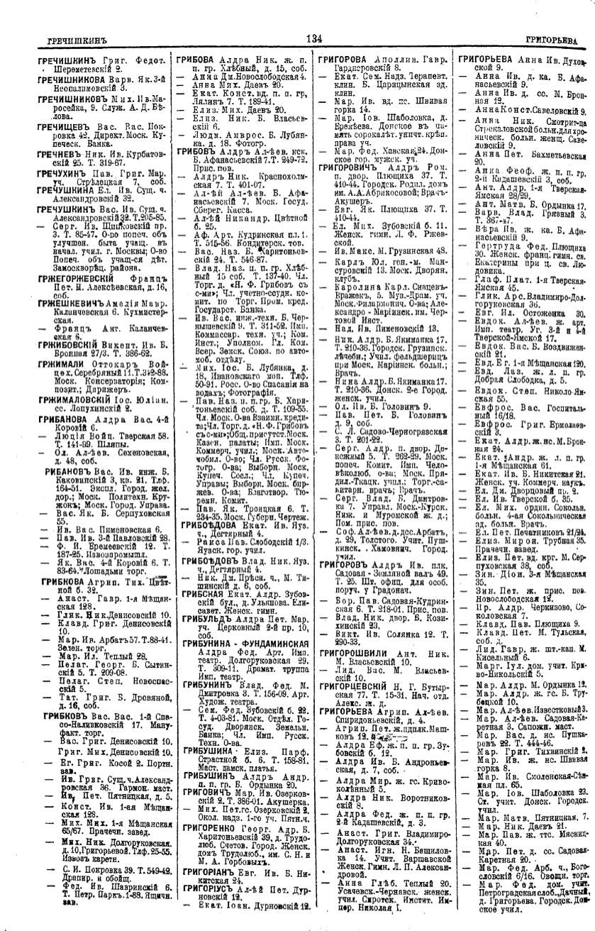 Алфавитный указатель адресовъ жителей г. Москвы и ея пригородовъ - page 134