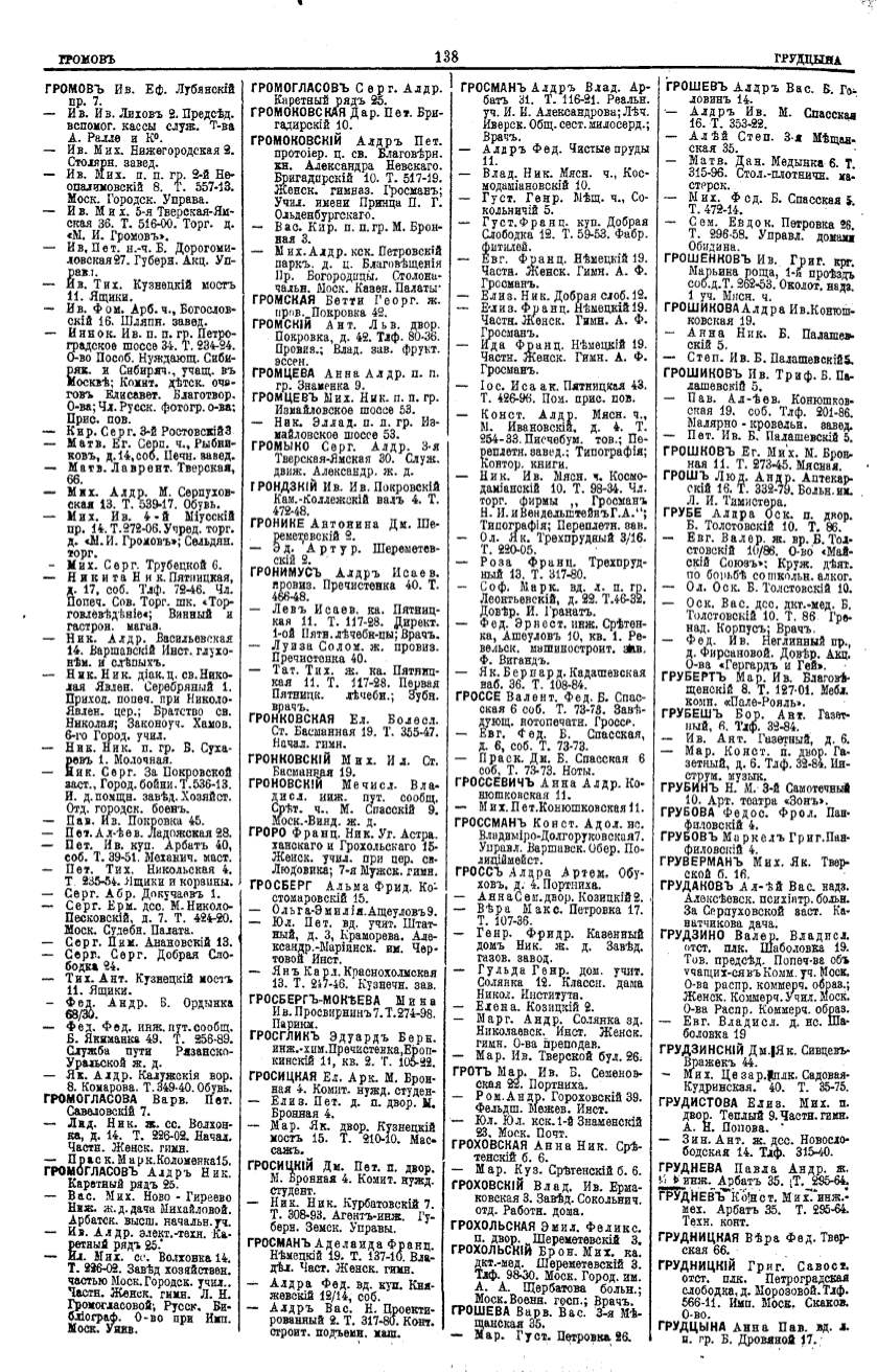 Алфавитный указатель адресовъ жителей г. Москвы и ея пригородовъ - page 138