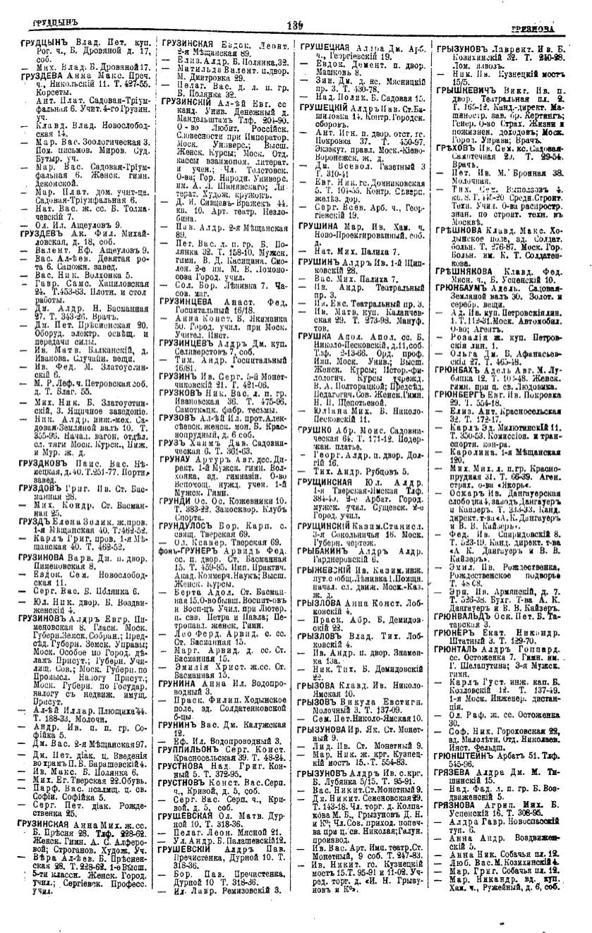 Алфавитный указатель адресовъ жителей г. Москвы и ея пригородовъ - page 139
