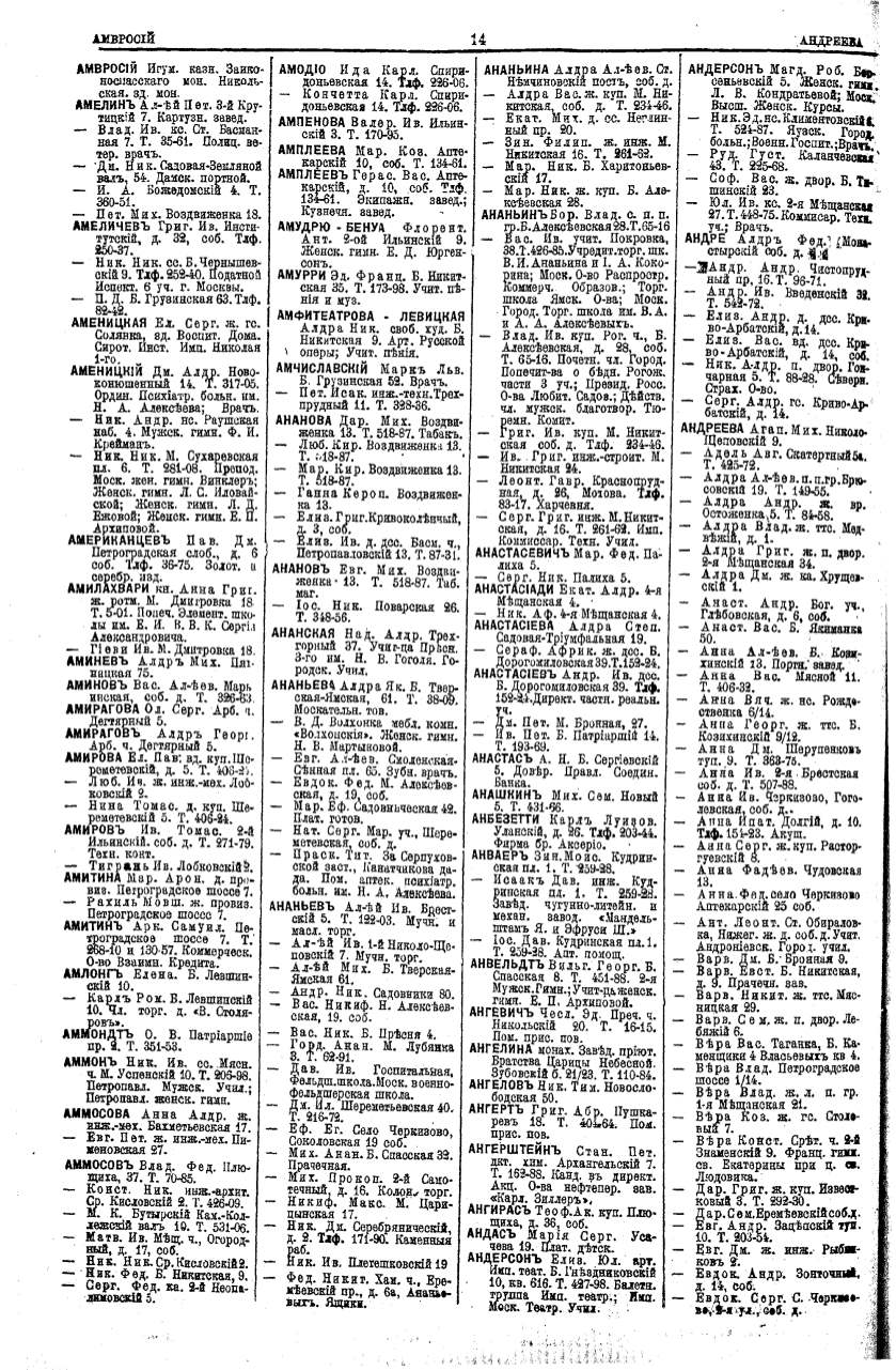 Алфавитный указатель адресовъ жителей г. Москвы и ея пригородовъ - page 14